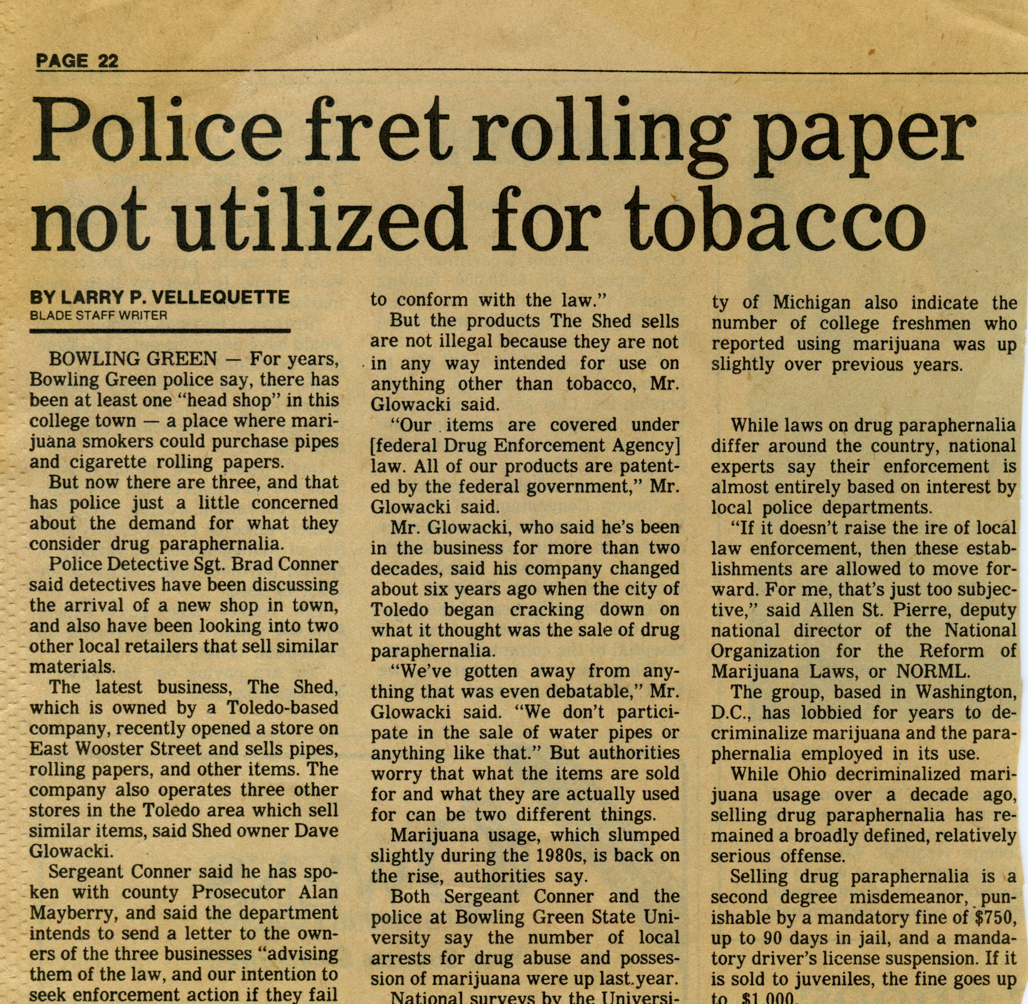 Dave Glowacki, CEO of Glow Industries, a national wholesale distributor turned open the first installation of a hometown legacy. Faded army parachutes draped from the ceiling, dimmed fluorescent bulbs painted a shroud of mystery on the walls. Paneled windows, adorned in day glow flowers spanned the entire face of the building Lewis Ave, in the August heat, the HEAD Shed proto type cranked up its stereo and the first of 22 years worth of incense sticks.